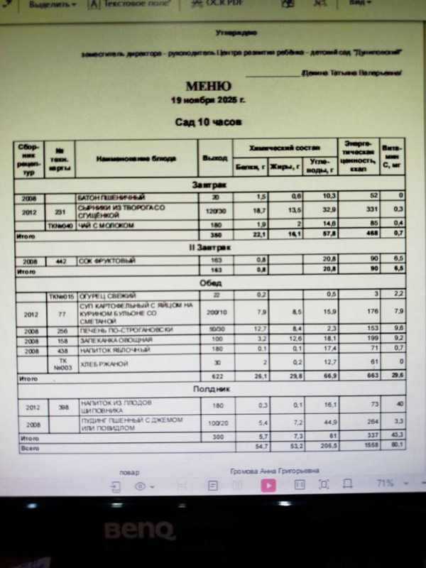 Примерное десятидневное меню для детей с 10,5 часовым дневным пребыванием в Центре развития ребёнка - детский сад "Дуниловский" (возрастная категория - 3-7 лет)