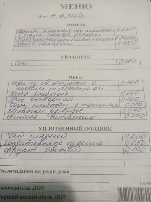 Примерное 14-дневное меню для детей от 3 до 7 лет с 9-ти часовым предыванием